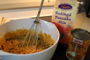 For my first Gluten Free baking adventure I decided to try Pamela’s Baking and Pancake mix.   I bought the 24 oz bag at a local health food store with a coupon!  My ultimate goal is to try the many different GF baking mixes and create my own once I know what I like.  The main reason for this is cost – GF baking mixes can be pricey!