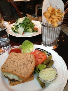 I ordered a cheeseburger and fries while my friend ordered the GF French Onion Soup and the Butter Lettuce and Arugula salad. They even put the fresh GF bread in the soup to make it Gluten Free instead of croutons!