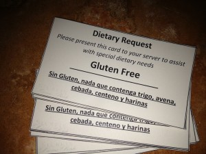 He said he had already notified all the restaurants about my Gluten Free needs and all I had to do was present this card to our waiter.