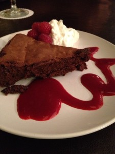 I ended the meal with the flour less chocolate brownie. The raspberry sauce was very good!