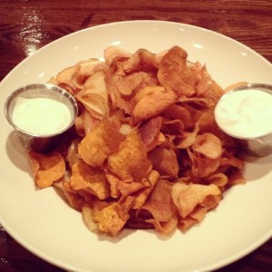 We started the meal with Lodge Chips. They are great fried potato and sweet potato chips that are cooked in a dedicated fryer. The ranch sauce and goat cheese sauce make these chips fantastic!
